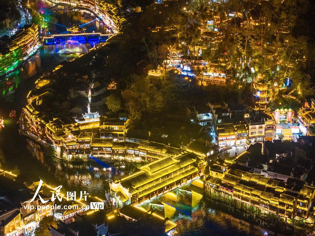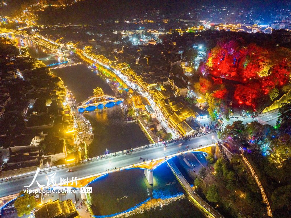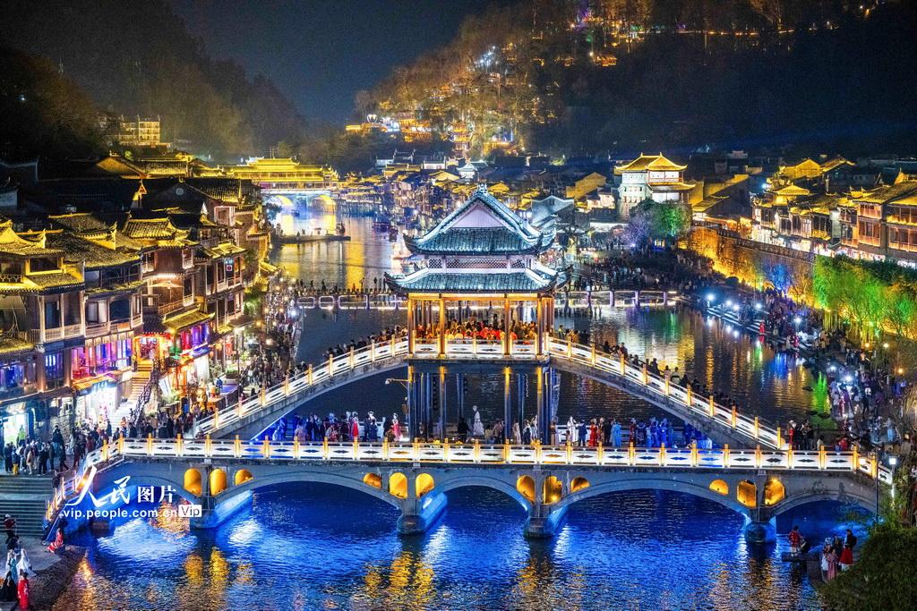2026年3月14日晚,湖南省湘西州凤凰古城,各地游客夜游古城股票配资虚拟网站,欣赏美丽夜景,感受湘西的独特魅力。何华文摄(人民图片网)