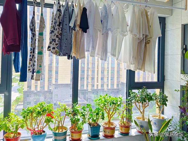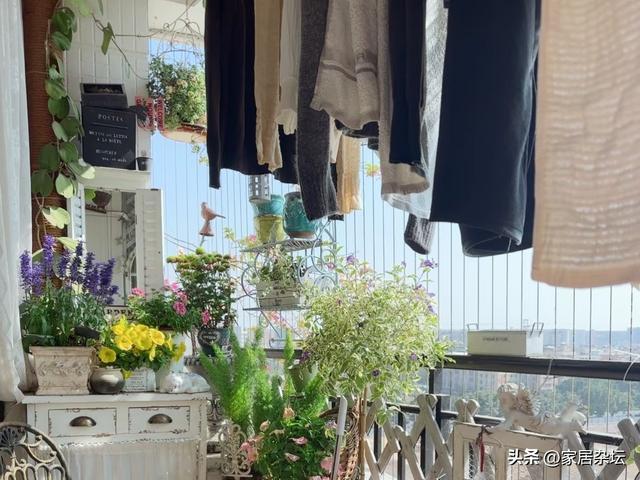 绿植晾移结合,需要精心设计布局,而且要控制晾晒衣物的色彩,避免杂乱。
