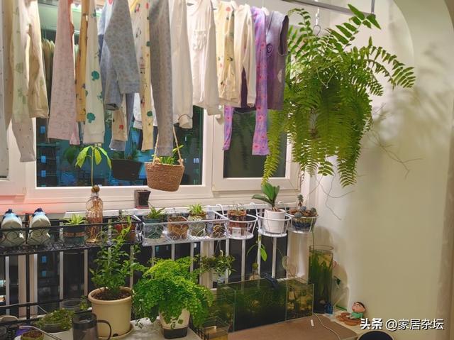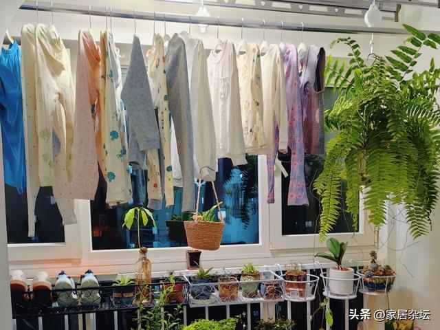 而需要晾晒的衣物,就可以与绿植交错,形成一种非常有生活气息的装饰效果。
