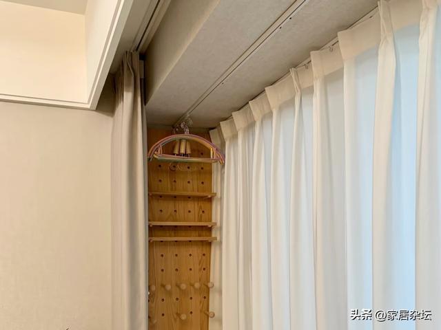 因为颜色隐蔽,位置较高,平时很不显眼。需要的时候,把它展开就可以晾衣服了。